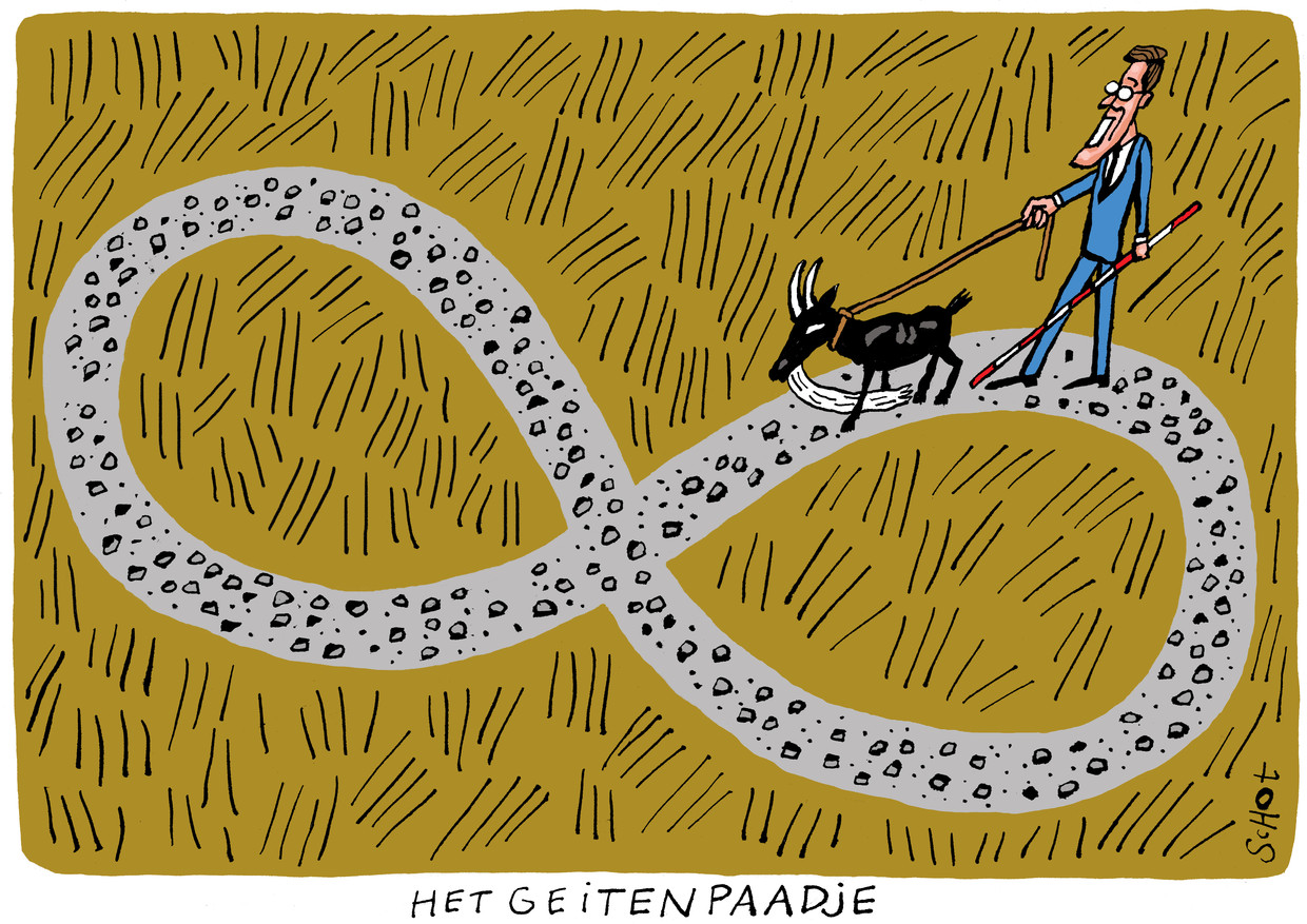 En zo draait Nederland al decennialang beleidsrondjes in het dossier van natuur en stikstof (voorheen onder de termen ammoniak en mest) zoals deze cartoon van Bas van der Schot mooi laat zien.